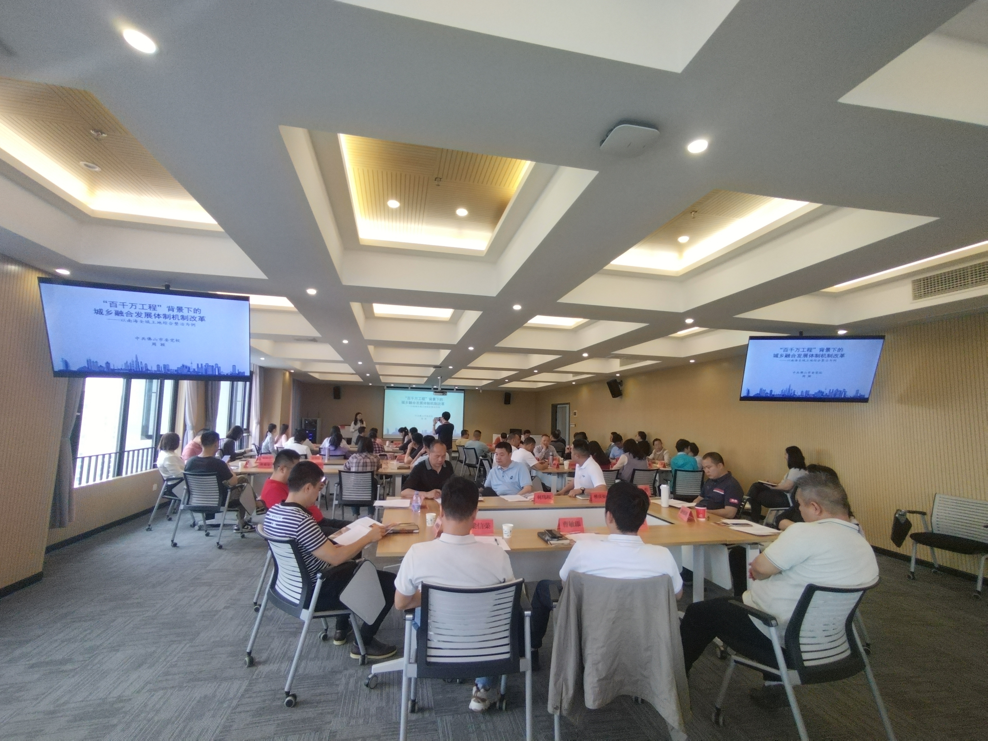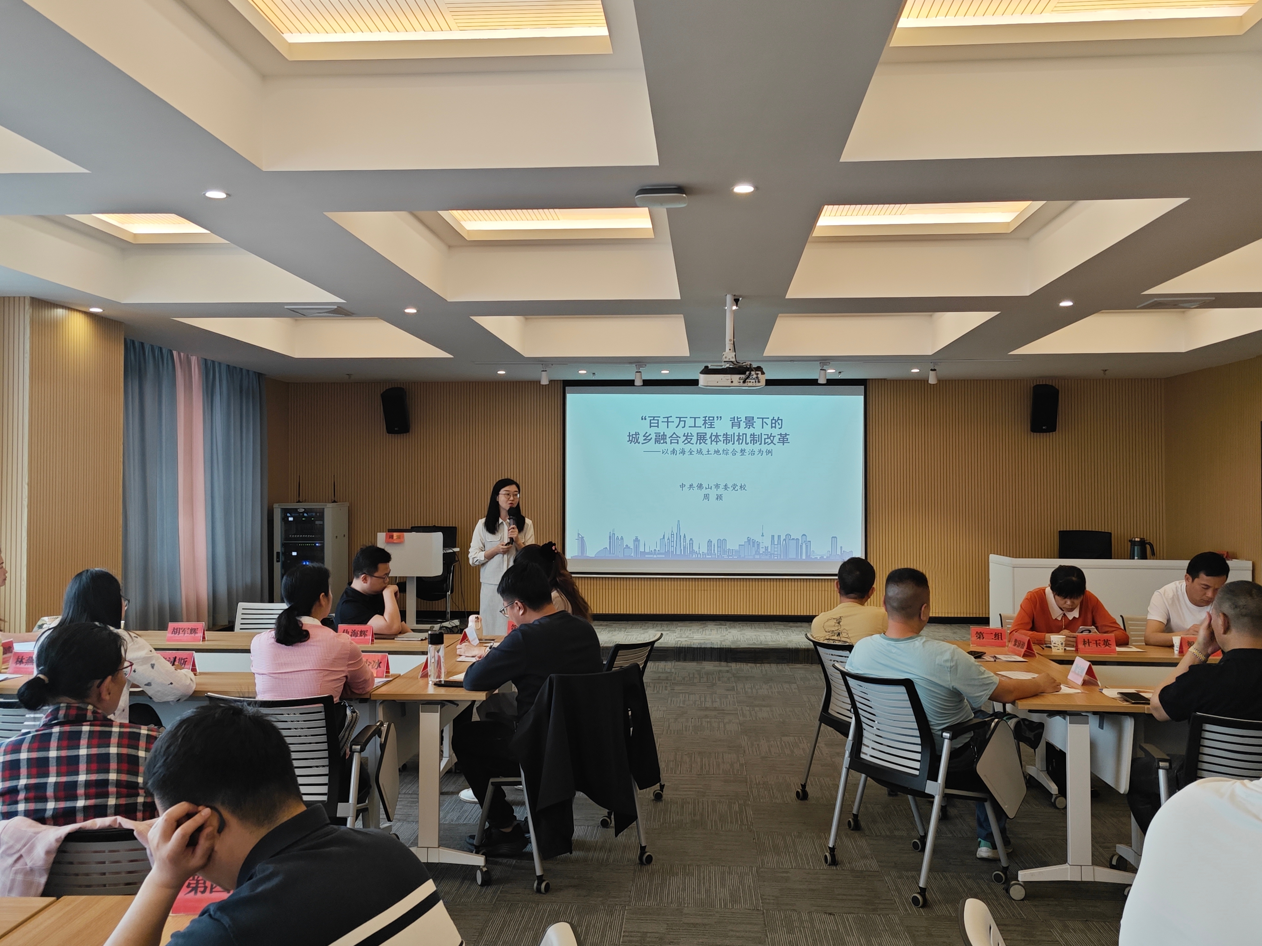 在检视“百千万工程”初见成效的第三个年头,今年初,大沥镇党委书记罗伟海围绕“中心大沥”建设,以“一张蓝图绘到底”的工作思路,创新提出“13312”工作部署。为了让社区干部更好了解南海区全域土地综合整治的成果,在本次培训邀请了佛山市委党校教务一处主任周颖作《“百千万工程”背景下的城乡融合发展体制机制改革——以南海全域土地综合整治为例》案例教学,周主任向参训学员介绍了“百千万工程”实施背景,以及南海区在全域土地综合整治的实践和经验总结,通过分组研讨和学员代表归纳提炼组内意见,引导学员深入思考大沥镇以及所在社区在全域土地综合整治方面的具体做法、破题思路等。