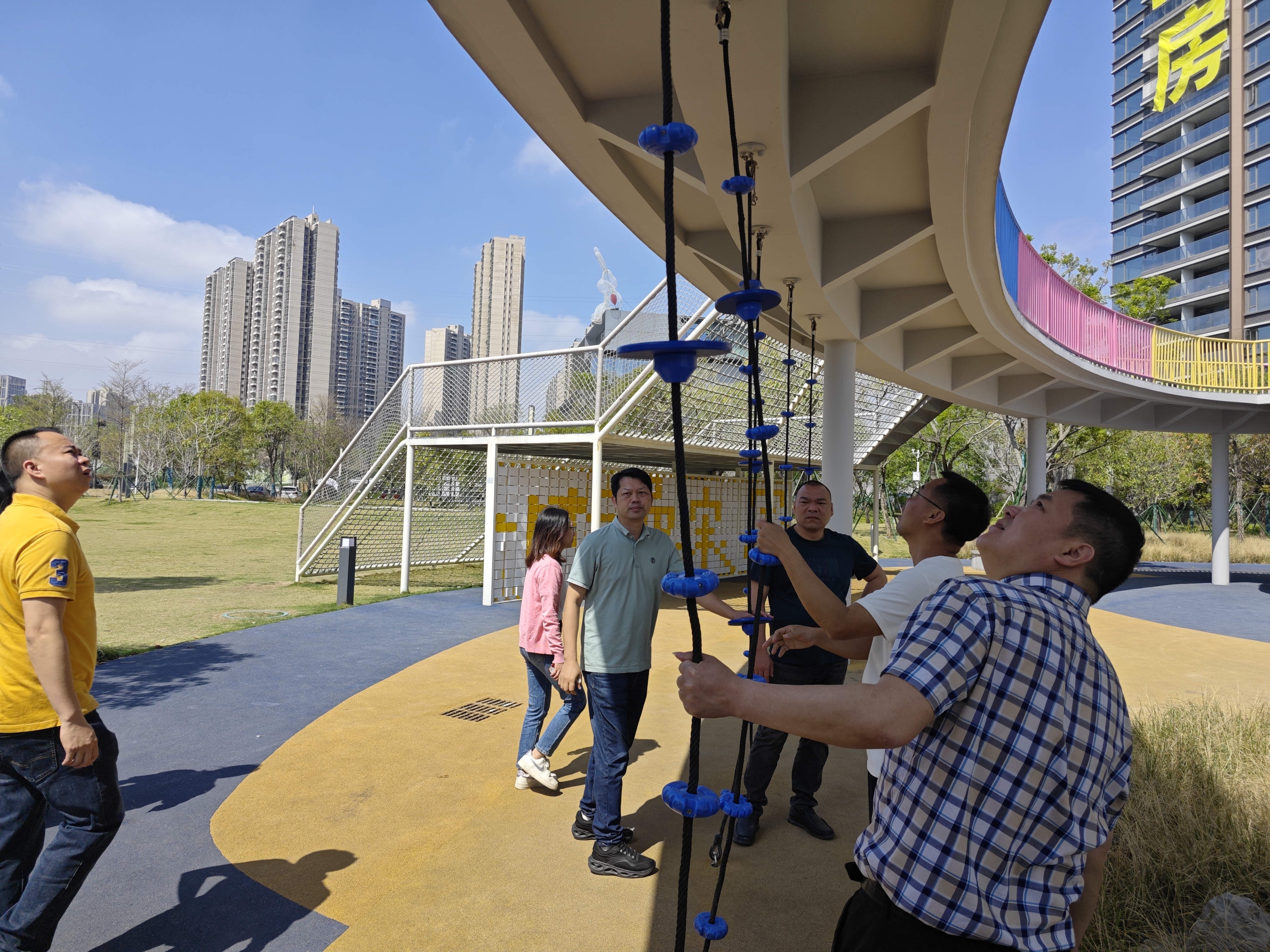 学员现场感受灯湖中轴公园的运动设施